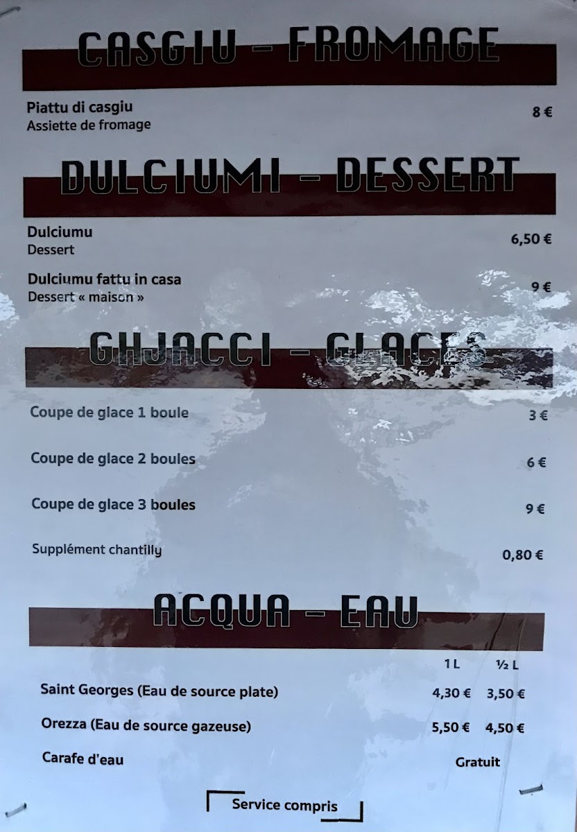 The menu thoughtfully combines local ingredients and heritage recipes, offering a true taste of Corsica. Friendly, multilingual service ensures seamless communication, even welcoming spontaneous visits with genuine hospitality. Whether winding down after a nearby hike or seeking a peaceful evening, the food’s robust flavors and the ambiance create a relaxed yet vibrant setting. U San Petru is a must-visit for those craving heartfelt, slow-crafted meals paired with cultural authenticity and genuine warmth.