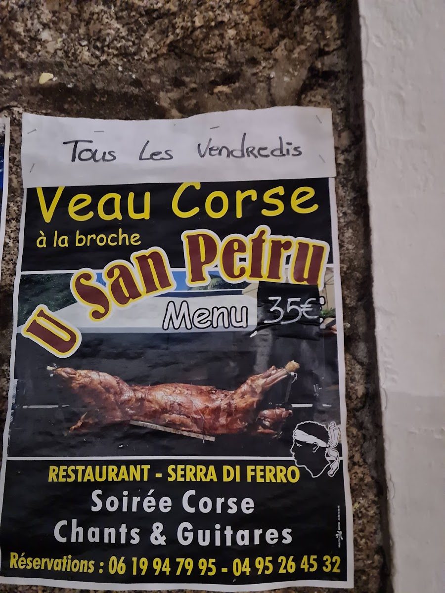 U San Petru Bar-Restaurant in Serra-di-Ferro is a captivating blend of rustic charm and culinary mastery, specializing in French and Mediterranean flavors. The hallmark of their menu is the slow-cooked veal, prepared for over 10 hours to achieve melting tenderness and rich depth—an unforgettable centerpiece that has delighted many patrons. Alongside, guests savor authentic Corsican dishes served in a warm, inviting atmosphere enhanced by traditional Corsican music, elevating the dining experience.
